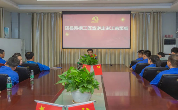 “七一”期间,为庆祝中国共产党成立101周年,同时为配合正在开展的创建省文明城市活动,安徽江南泵阀集团有限公司邀请“全国五一劳动奖章”获得者、省劳模、大国工匠、中国好人、省优秀党员、省党代表、中国宣纸股份有限公司晒纸工毛胜利来公司宣讲。县总工会党组成员、副主席肖健,安徽江南泵阀集团公司董事长吴同茂等出席,公司职工代表参加活动。