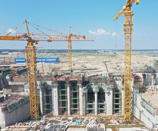 近日,新集水电站3号发电厂房进口闸墩段成功封顶,为后续机电设备及闸门安装创造了有利条件。