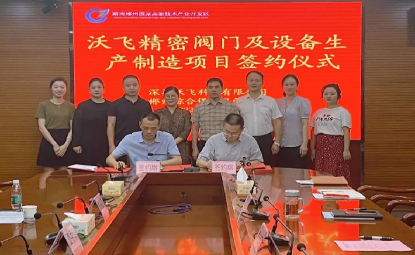 8月20日上午,郴州综合保税区管理局与深圳沃飞科技有限公司签订沃飞精密阀门及设备生产制造项目入园合同。郴州综合保税区管理局全体干部职工、沃飞科技董事长曹中华、深圳市智能穿戴行业协会会长郑道源参加签约仪式。