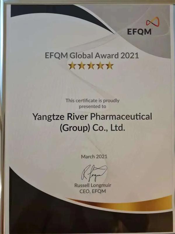 2020年4月,扬子江药业集团导入新版EFQM模型,围绕宗旨、愿景和战略、组织文化与领导力、可持续价值、推动绩效与转型、战略与运营绩效等多方面进行分析总结、对标改进,于当年11月向欧洲质量管理基金会提交EFQM全球奖申请,并顺利通过资料评审。2021年1月,来自德国、奥地利等不同国家的8人专家评审团,通过线上和线下联合的方式,对扬子江药业集团进行了为期5天、严苛的现场评审。一致认为,扬子江药业集团在质量风险管控模式和质量文化、生态系统领导者、中药领域领导者等6个方面的管理优势,为行业发展提供了许多最佳实践。此次荣获世界质量大奖“EFQM全球奖”,标志着扬子江药业集团经营管理水平已经与世界一流企业接轨,为集团高品质产品进入欧洲市场奠定了良好的基础。