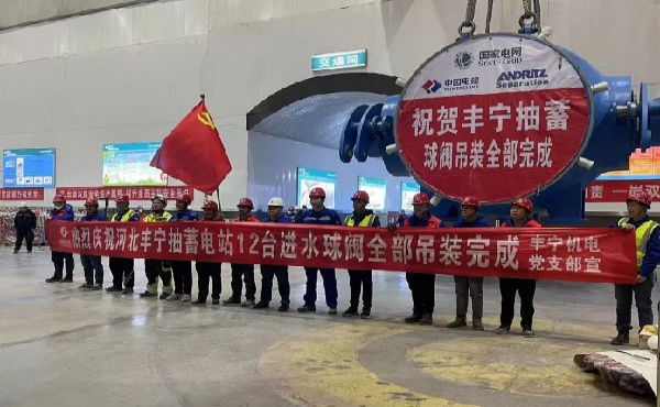 11月4日,制造安装公司承建的丰宁抽水蓄能电站最后一台进水球阀11号机进水球阀顺利吊装完成,至此,丰宁抽水蓄能电站顺利完成全部12台机组进水球阀吊装。