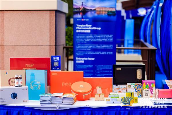 图为扬子江药业集团在论坛现场展示的大健康产品。