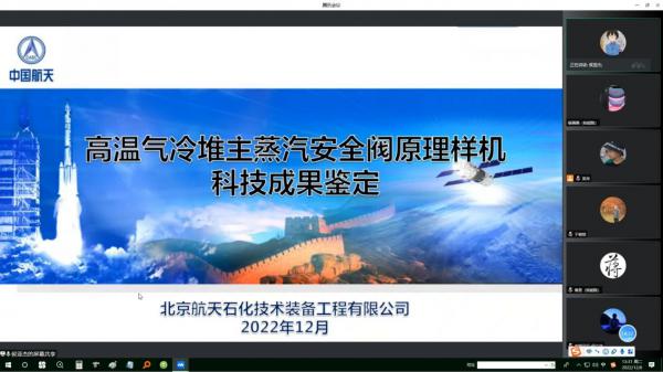 2022年12月6日,由华能核能技术研究院有限公司和北京航天石化技术装备工程有限公司研发的“高温气冷堆主蒸汽安全阀原理样机”通过中国核能行业协会以视频方式组织召开的科技成果鉴定会。