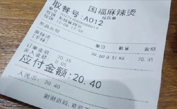 原来近期在辽宁大连的某高校,一位同学发现杨国福麻辣烫在他就餐时采用了反向抹零的方式进行结算:一碗麻辣烫20.35元被收取了20.4元;另一碗16.47元被收取了16.5元。
