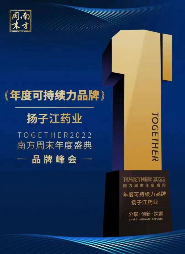 扬子江药业集团斩获“年度可持续力品牌”奖