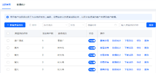在客户来源统计上,米多客企微助手可以生成渠道活码,在每个客户渠道都可以设置一个不同的二维码,通过米多客后台就可以实时了解每个渠道的客户来源。从而企业可以科学地评估不同渠道的优劣或者对广告投放效果进行跟踪。