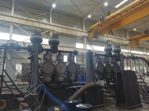 高压煤浆泵是山东某公司炼化一体项目气化装置用核心设备,在该型双联高压煤浆泵研发过程中,运用了最新的隔膜技术、阀技术、密封技术、智能补排油隔膜行程控制技术、脉动控制技术、PLC控制技术及曲轴相位控制技术等。总装车间、电气室及矿浆泵室人员之间团结协作,高效推进首台双联高压煤浆泵装配和性能试验工作。