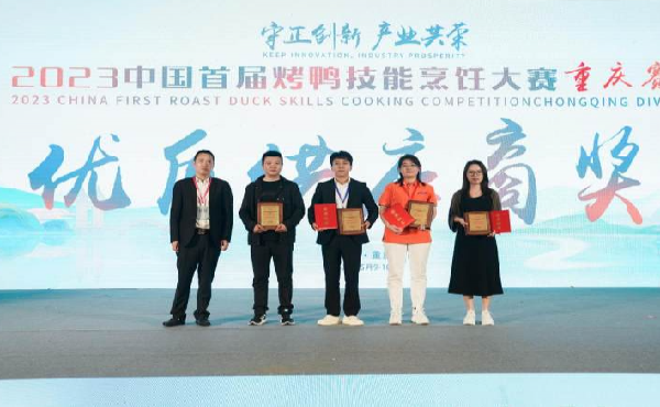 2023中国首届烤鸭技能烹饪大赛(重庆赛区)由中国烹饪协会主办,中国烹饪协会烤鸭专业委员会承办,得到中国全聚德(集团)股份有限公司、北京便宜坊烤鸭集团有限公司、北京大董烤鸭店有限责任公司、重庆市烹饪协会、北京汉森国际展览有限公司、重庆德香苑企业管理有限公司、陕西富强宏图牧业有限公司、山东鲁工厨房设备有限公司、安徽立全宏达食品有限责任公司、重庆守柴炉餐饮管理有限公司等企业大力支持。本届大赛参与的品牌规模、参赛选手水平得到专家评委的广泛认可;大赛成为连接烤鸭产业上下游,促进产业交流的一次盛会。