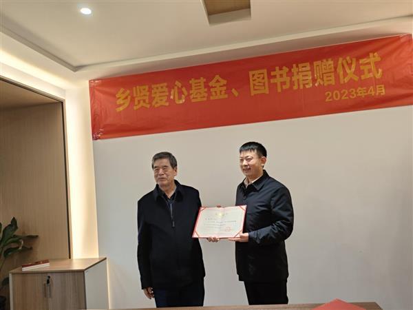 乡贤项美根捐赠人民币10万元以及自传《回眸八十春》