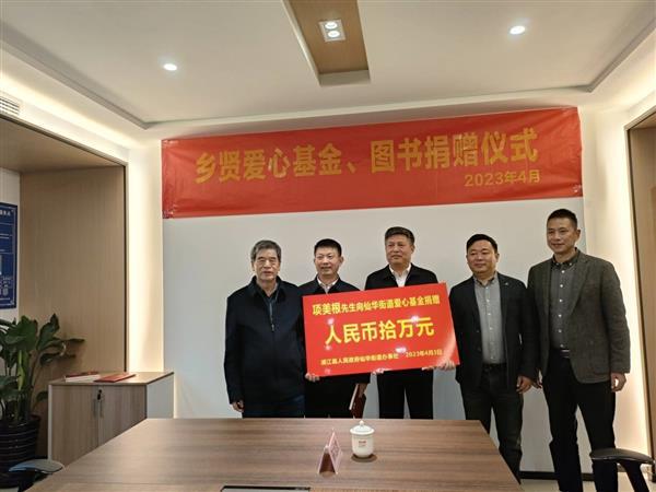 4月3日下午,仙华街道项宅社区乡音盈耳、乡情满溢,大屏幕上“欢迎优秀乡贤项美根回家!”的话语赫然醒目,一场为仙华街道乡贤、黄山良业智能控制股份有限公司终身名誉董事长项美根举行的乡贤爱心基金、图书捐赠仪式在这里举行。浦江县人大常委会副主任于新宣、仙华街道党工委书记张平、仙华街道统战委员黄斌、项宅社区党委书记陈旭彪、街道相关科室工作人员和项宅社区工作人员参加捐赠仪式,仙华街道党工委副书记赵晓键主持捐赠仪式。