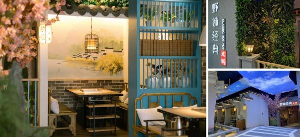 在野妹火锅餐厅设计中,使用了素朴温暖的原木色,以砖墙、屏风、花窗等经典的徽派元素营造出江南水乡的氛围,以浪漫帷幔、盎然绿植的色调铺陈清爽怡人的雅韵,为消费者营造了一个优美、舒适、宽敞的就餐空间。此外,LOFT风格的桌椅和博古架,为江南水乡增添了一丝时尚气息。对于消费者而言,在这里不仅能够享受美食,同时还能够感受到精致、典雅的生活方式,让消费者感受到品牌的文化内涵和情感价值。