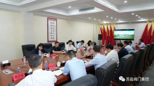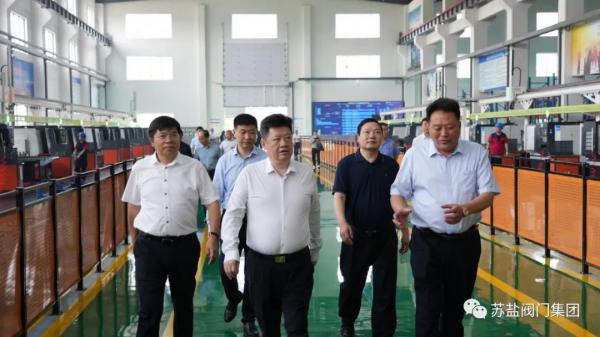 6月2日上午,江苏省市场监督管理局一级巡视员冯新南一行莅临苏盐阀门,调研“苏盐”品牌创建情况。盐城市市场监督管理局副局长孟令永、质量发展处处长王新生、滨海县政府副县长李品、县市场监督管理局局长李向辉等陪同调研。