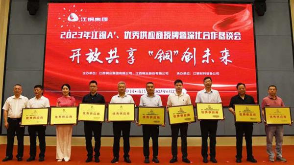 开放共享, “铜”创未来。6月27日江铜集团优秀供应商授牌暨深化合作恳谈会在南昌举行。耐普矿机收获年度A+供应商、优秀供应商双重殊荣,董事长郑昊受邀出席并作供应商代表发言。