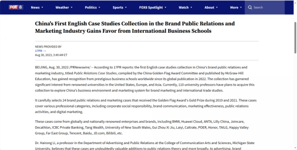 同时,Public?Relations?Case?Studies?获得来自美国、欧洲以及亚洲知名商学院青睐,已有110位大学教授计划采买该案例集,为品牌营销及国际贸易专业研究中国商业环境及市场营销体系提供案例。