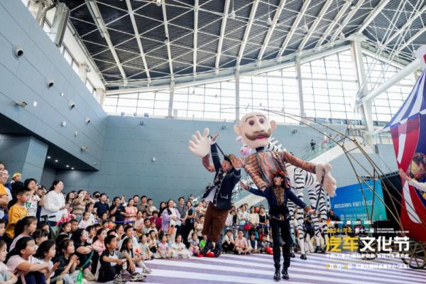 车展以“潮趣新玩场”为活动主题,引入多种娱乐互动形式,7米巨型木偶大马戏《蒸汽朋克马戏团》沉浸式亲子互动,剪刀石头布赢汽车,到场得新晋网红公仔-卡皮巴拉,发财包包、问号抱枕也深受大家喜爱;成功打造了一个集购车、娱乐、文化体验于一体的综合性平台,为参观者带来了一场难忘的汽车文化之旅。