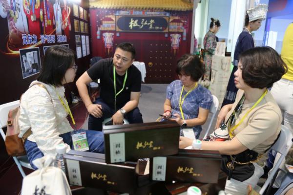 在500多家参展商中,极弘堂展厅以其独具风格的红色国风主题装修脱颖而出,使其在现场格外引人注目。展厅以中国故宫元素为设计灵感,巧妙运用红墙、黄瓦、雕梁画栋等元素,彰显品牌气度和高雅格调,为现场宾客带来了恢宏壮丽的视觉享受,展厅内,工作人员身穿绣花苗族服装,头戴银饰,热情地接待着现场的宾客,展示着苗族人民独特的风采。