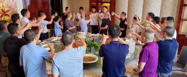 9 日上午8点,我们乘坐两辆大巴车从公司出发,大约11点半,团队成员怀着期待与兴奋的心情顺利抵达浦江国际大酒店。刚一下车,县委领导及乐门集团领导的热情迎接就让大家感受到了满满的温暖,丰盛美味的接风宴更是让大家的味蕾得到了极大的满足。