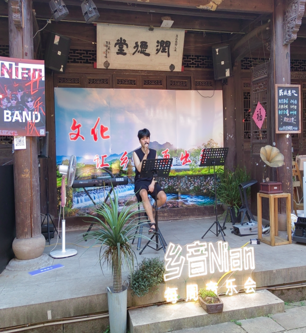 来到村中润德堂,大家被一场别开生面的乡村演唱会所吸引,欢快的旋律、质朴的歌声回荡在村落,大家一边欣赏着音乐,一边乘凉,无比惬意。