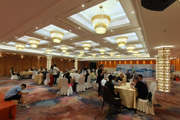 晚上回到入住饭店,公司工会组织开展了一场掼蛋比赛,这次比赛有28位选手共14组参赛,比赛时,选手们全神贯注,出牌果断,围观的同事们也时而紧张时而欢笑,现场气氛热烈非凡。最终第4组、第7组和第14组分别获得*、亚军和季军。