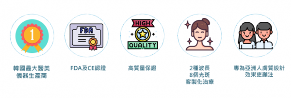 有美国FDA认证共12项国际级认证,专属亚洲人使用,能够减低反黑反白的机会,结合了皮秒纳秒,能够一招击退黑色素,特设蜂巢嫩肤头,可针对3个不同肌肤层刺激胶原,胶原大爆发增生没有难度。