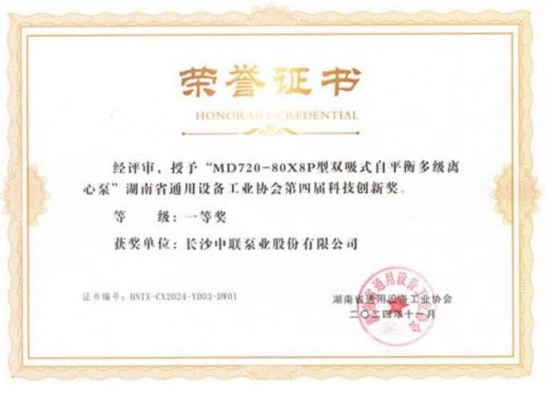 中联泵业斩获湖南省通用设备工业协会多项荣誉