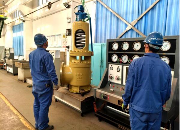 为了安全、平稳地完成校验工作,校验人员首先通过反复查阅相关安全知识与安全阀校验资料,制定了详细的校验方案。经过一周的模拟演练,团队最终确定了最适合的操作流程。在实际校验过程中,校验人员不仅解决了超大通径安全阀搬运的困难,还克服了出厂整定压力与现场实际要求不匹配的难题。特别是在调整安全阀顶端阀帽和扳手等附件时,校验人员精确调整,确保了整定压力的准确性,顺利完成了两台超大通径安全阀的校验工作。