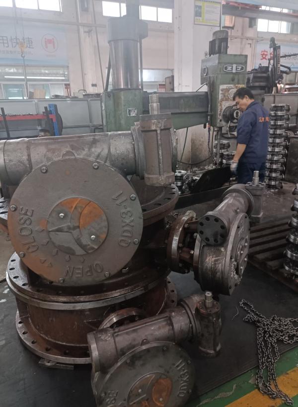 上海禹轩生产的D343H-16C-DN1000法兰硬密封蝶阀,凭借其卓越的性能和可靠的品质,在工业阀门市场中占据重要地位。以下是该蝶阀从精车、钻孔、装配、试压到检验的完整生产过程。