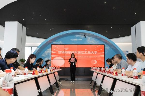 瑟维斯总经理夏新梅在致辞中表示,此次项目的启动不仅是与浙江工业大学深化战略合作的良好契机,也是公司实施“产学研用”协同创新模式的具体体现。她强调,公司将借助这一合作加速技术成果的产业化转化,提升核心竞争力。夏总进一步提到,公司正在积极推进数字化转型,提出了“四化融合”的发展路径——通过作业数字平台化、网络推广化、智能升级化,结合绿色化发展方向,最终打造具有网络协同、智能运营和可持续发展特征的现代化工厂新图景。