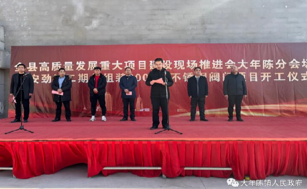 2月14日,大年陈镇隆重举行惠民安劲达机械二期年组装3000吨不锈钢阀门项目开工仪式。大年陈镇副科级以上领导干部、相关部门负责人及企业代表参加。仪式由副镇长杨宝强主持,共三项议程:一是党委副书记颜晓冬介绍项目发展情况。二 [
