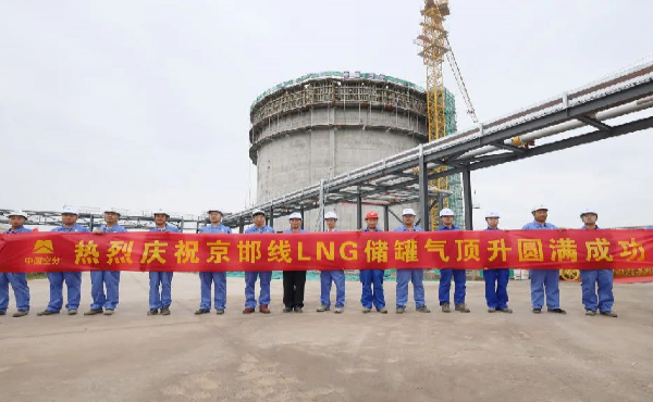 中国空分承接的京邯线LNG储气调峰站EPC项目混凝土全容罐气顶升成功
