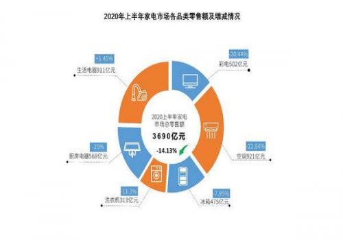 ?2020上半年我国家电市场零售额规模为3690亿元,同比下降14.13%