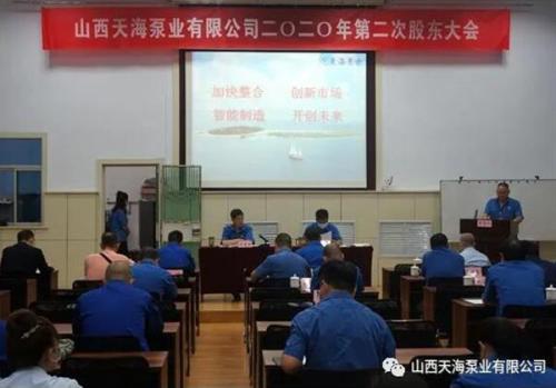 6月16日,山西天海泵业有限公司在公司职教中心召开2020年第二次股东大会,股东应到22人,实到19人,委托3人,符合法定人数。公司董事长刘院昌现场解答股东提问,针对具体问题答疑解惑。会议由公司总经理宁克法主持。全体中层 [
